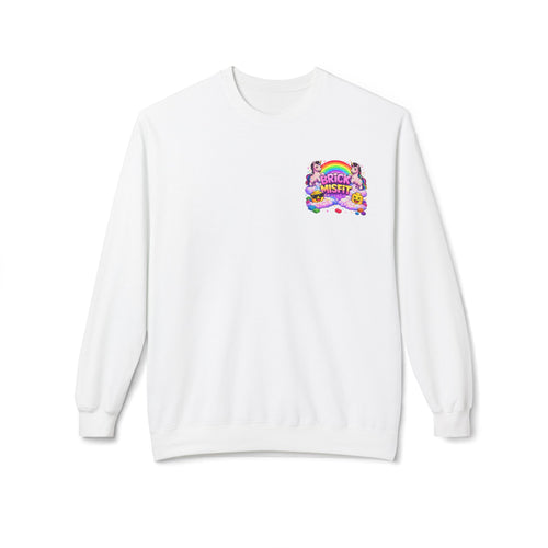 Brick Misfit sweatshirt | Rainbow clouds, kawaii building block character